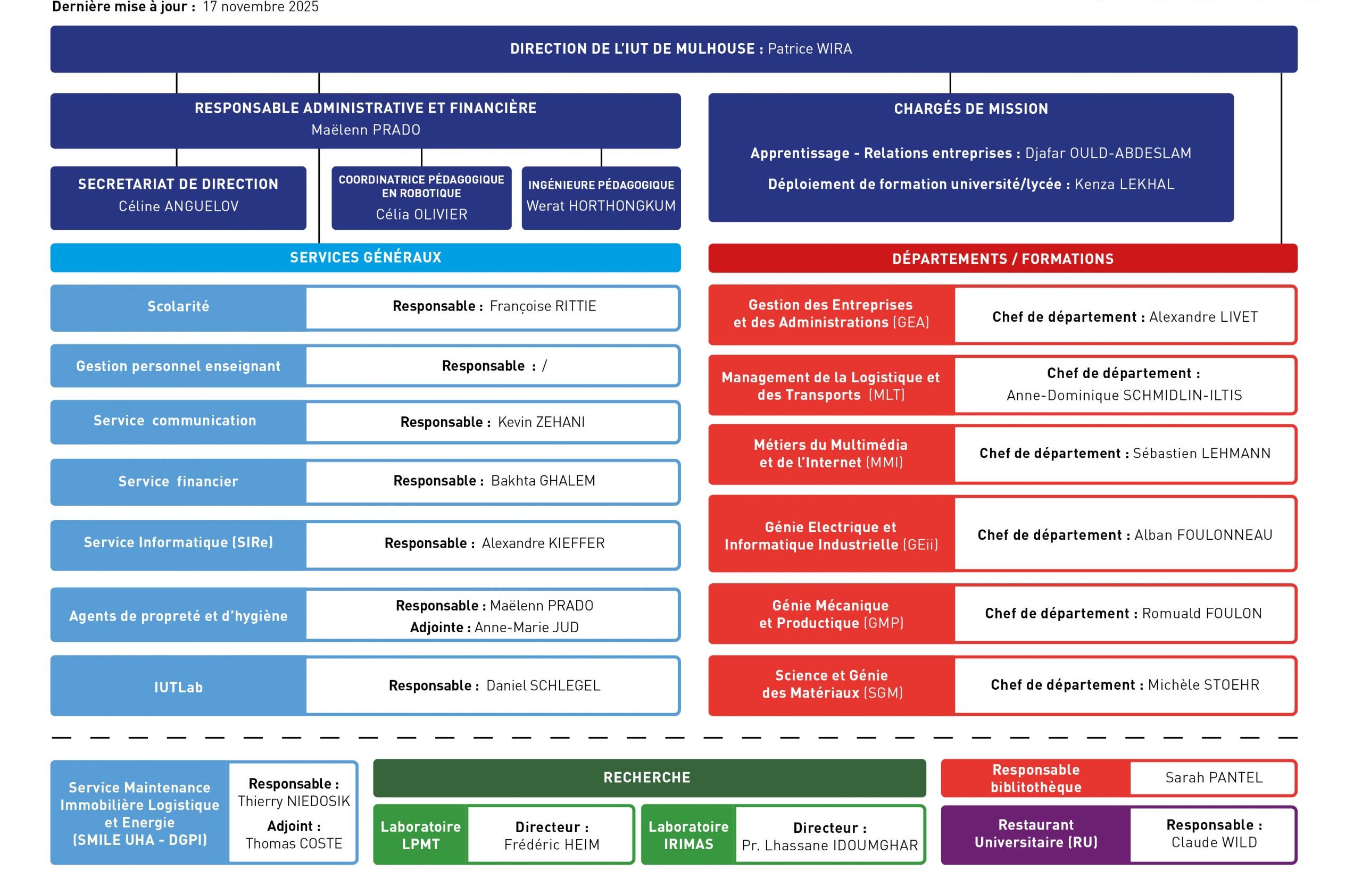 Composante de l’Université de Haute-Alsace, l’Institut Universitaire de Technologie (IUT) de Mulhouse dispense en formation initiale, continue et par apprentissage un enseignement supérieur destiné à préparer aux fonctions d’encadrement technique et professionnel.